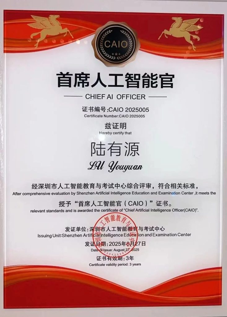 8月27日(星期三)上午10时至12时,“2025深圳(国际)通用人工智能大会”开幕式暨表彰颁牌环节于深圳国际会展中心(宝安)·红树林厅举行。城市之光无人驾驶首席执行官陆有源博士荣获“2025十大首席人工智能官(CAIO)”这一重要行业荣誉,以表彰其在人工智能技术研发与商业化落地方面所做出的卓越贡献。